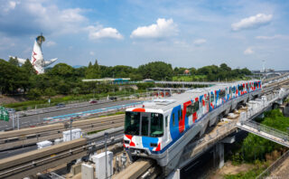 大阪空港駅を発つと、離着陸する航空機を間近に望みながら南へ。蛍池駅で阪急電車と交差すると、まもなく県道2号線 中央環状線に合流し、その上空を軽快に東へと進みます。万博記念公園駅で「太陽の塔」を車窓に大きく写すと、名神高速・JR京都線・阪急京都線と跨ぎつつ進路を南へと変えます。眼下に広がる大阪貨物ターミナルと東海道新幹線の鳥飼車両基地を過ぎ淀川を渡ると、現在の終点・門真市駅に。まもなくこの先も延伸開業が予定されています。